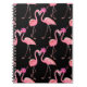 Pink Flamingos: Black Background Vintage Notebook