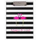 Pink Flamingos, Black, White Stripes Personalised Clipboard