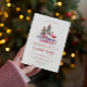 Christmas-themed Christmas in July cocktail party invitation featuring a pink flamingo and Christmas trees with an elegant red retro typography. You can personalise it to invite your guests in a style.