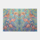 playful painting of pink flamingos with blue and yellow leaves on a purple background is a fun way to welcome yourself home with a smile.