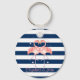 Pink Flamingos In Love,Navy Blue Stripes Key Ring