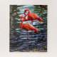 These are two beautiful Flamingos in the water. Their long majestic legs are wading in the water while the curve of their necks slopes downwards. Their bright pink feathers really pop on the shimmering water.