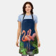 Pink Flamingos on Classic blue & Green All-Over-Pr Apron
