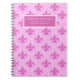 Pink Fleur De Lis Pattern Custom Name Notebook