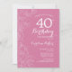 Pink Floral 40th Birthday Party Invitation. Minimalist modern design featuring botanical outline drawings accents and typography script font. Simple trendy invite card perfect for a stylish female bday celebration. Can be customised to any age. Printed Zazzle invitations or instant download digital printable template.