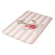 Add a touch of nautical charm to your bathroom with this pink floral anchor striped bath mat. This design features a watercolor anchor adorned with pink flowers, set against a backdrop of pink and white stripes, with space for a custom name. This plush and absorbent product is visually appealing and provides a comfortable and safe surface. Enhance your home with this stylish, personalised accent.