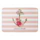Pink Floral Anchor Nautical Stripes Custom Name Bath Mat