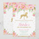 Pink Floral and Gold Carousel 1st Birthday Girl Invitation