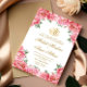 Pink Floral and Leaves Islamic Muslim Wedding Invitation
