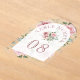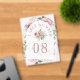 Elegant blush pink wedding table number card featuring beautiful flowers.