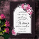 Invite your friends and loved ones to your wedding with this modern pink floral mulberry arch wedding invitation.