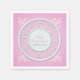 Napkin in pink for the Floral Around the Clock Shower Suite. A silver clock face is the focal point of the design. Floral silhouettes surround it, adding a soft, bridal motif. Choose from three different background colours: teal, pink, or purple. Spice up your themed bridal shower with matching, personalised napkins!