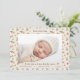 This sweet pink floral blossom baby girl birth announcement features little blossoms and on a soft and creamy background patterns. Add four photos and simply personalise with baby name, birth date, weight and length. Simply personalise the message on the back for a beautiful birth announcement.