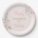 Pink Floral Baby Shower Girl Paper Plates, platos para Baby Shower de niña con flores rosas