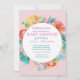 Colourful Spring Flowers Baby Shower Invitation. This cute design is surrounded with pretty teal blue, pink, and yellow flowers. Add your party details to see what your invitation will look like before purchase. Our template makes it easy to change the wording for your baby shower.