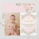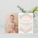 Pink Floral Baptism Christening Thank You Card