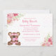 Cute baby bear with a pacifier and baby bottle and hairband. Mum to be will love this cute baby shower invitation for her baby girl. KristiW/Graphics n Bits