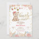 Pink Floral Bear Baby Shower Invitation,