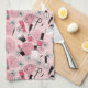 Pink Floral Beauty Products Pattern Tea Towel