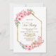 Celebrate your birthday and invite your friends and loved ones to a tea party with this elegant gold geometric framed pink floral birthday party invitation. You can include any age in the invitation template.