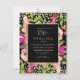 Pink watercolor floral and green leaves on a black and glittery gold 18th birthday party invitation for women. The back of this card has gold polka dots on a black background. Contact us for help with customisation or to request matching products.