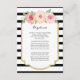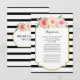 Direction card inserts for wedding in black and white stripes pattern with gold vintage border, rustic pink watercolor flowers and handwritten style lettering. Customise these cards with your wedding directions, accommodations or other information to be included with your wedding invitations, also perfect for anniversary parties or birthday parties. Available in a wide range of matching wedding products.