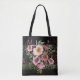Pink Floral Black Tote Bag