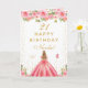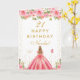 This elegant and glamorous birthday card can be personalized with a name or title such as daughter, granddaughter, niece, friend etc. The design features a beautiful princess with blonde hair and fair skin in a pink ball gown. The text combines handwritten script and modern sans serif fonts for a classy and sophisticated look. The floral arrangements, butterflies and gold confetti create the perfect blend of rustic and chic.