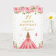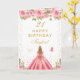 Pink Floral Blonde Hair Girl Happy Birthday Card