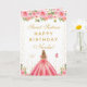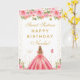 This elegant and glamourous sweet sixteen birthday card can be personalised with a name or title such as daughter, granddaughter, niece, friend etc. The design features a beautiful princess with blonde hair and fair skin in a pink ball gown. The text combines handwritten script and modern sans serif fonts for a classy and sophisticated look. The floral arrangements, butterflies and gold confetti create the perfect blend of rustic and chic.