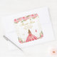 This elegant and glamourous birthday party thank you sticker features a beautiful princess with blonde hair and fair skin in a pink ball gown. The text combines handwritten script and modern sans serif fonts for a classy and sophisticated look. The floral arrangements, butterflies and gold confetti create the perfect blend of rustic and chic.