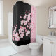 Pink Floral Blossoms Black & Pink Towel Shower Curtain