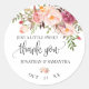 Pink floral boho chic wedding thank you classic round sticker