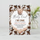 Pink Floral Boho Cow Print Highland Cow Birthday Invitation