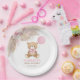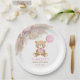Pink Floral Boho Teddy Bear Balloon Baby Girl Paper Plate