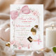 Pink Floral Bow Girl First Holy Communion, Pink Bow Pearls First Holy Communion Invitation, Boho Floral Holy Communion Cross Christening Invitation, Pink Coquette Bow First Holy Communion