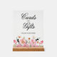 Cards and Gifts clear acrylic tabletop sign features pink wildflowers, roses and daisies, perfect for your bridal shower. CHANGE THE SIZE to fit your event and order with or without a wood stand. MATCHING items in our collection.