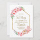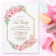 Celebrate the excitement of your recent engagement and invite your friends and loved ones to a tea party with this elegant gold geometric framed pink floral bridal shower invitation.