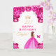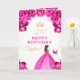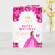 Pink Floral Brown Hair Girl Happy Birthday Card