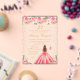 Pink Floral Brown Hair Princess Birthday Party Acrylic Invitations