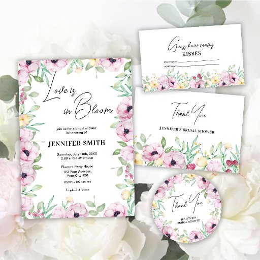 Pink Floral Anemone Love is in Bloom Bridal ShowerDesigned by Svetlana Kovalenya