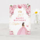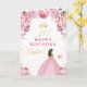 Pink Floral Brunette Hair Girl Happy Birthday Card