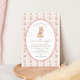 Celebrate your little bunny with this sweet baby shower invitation featuring soft pink stripes, vintage roses, and an adorable watercolor bunny illustration.