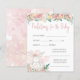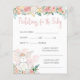 Baby shower game sheet for PREDICTIONS FOR THE BABY designed in watercolor pink florals and accented with a cute bunny rabbit. Coordinating baby shower stationery and party decorations and supplies are also available for easy shower planning. ASSISTANCE: For help with design modification or personalisation, colour change, resizing or transferring the design to another product or you would like coordinating or matching shower items, contact the designer BEFORE ORDERING via the Zazzle Chat MESSAGE tab below or email makeitaboutyoustore@gmail.com.