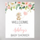 Pink Floral Bunny Balloon Baby Shower Welcome Sign