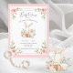 Pink Floral Bunny Baptism Christening Invitation Postcard