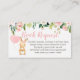 Cute book request insert card featuring a cute bunny pink heart shaped balloon and floral arrangement. Same design baby shower invitation is also available at the store.