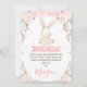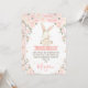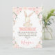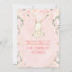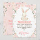Cute Bunny birthday thank you card featuring a white bunny or rabbit, some pink floral arrangements, pink banner and faux gold grunge texture. This design is a sweet way to thank guests for to your little girl's bunny themed birthday party.