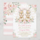 Pink Floral Bunny Rabbit Twin Girl Baby Shower Invitation