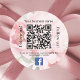 Pink floral business name qr code Facebook Classic Round Sticker